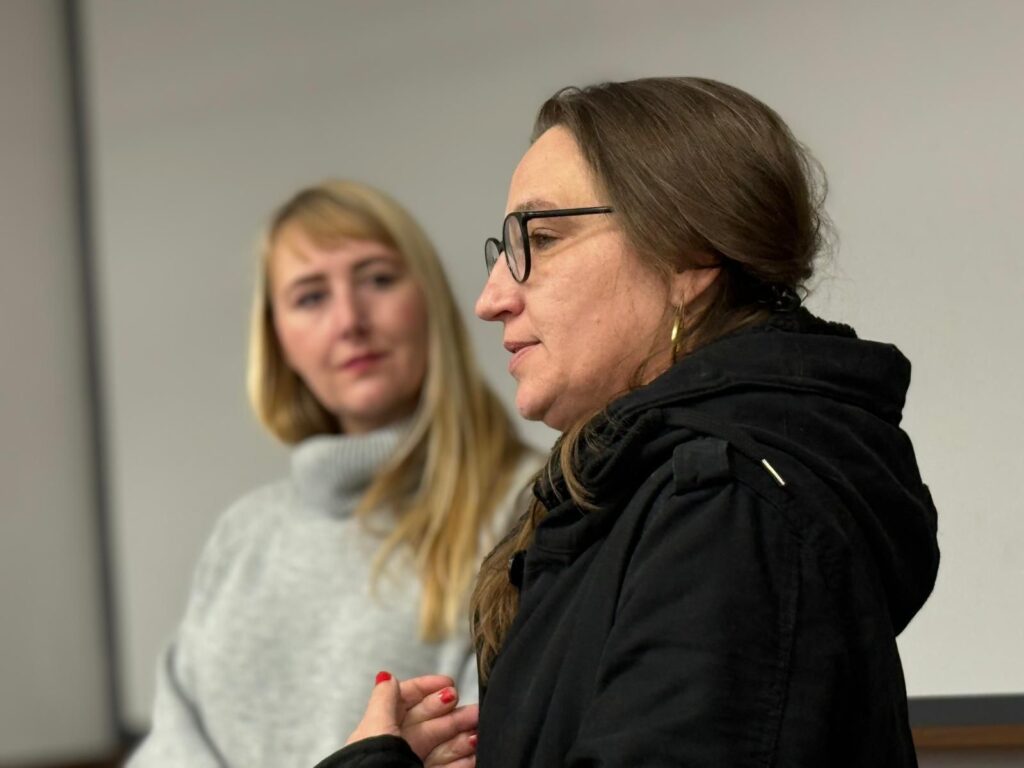 Lotta Maier, Dreiländereck bölgesindeki şiddet eğilimli sağcı grupların yapısını ve uluslararası bağlantılarını anlattı. Trump dönemi etkileri ve eleştirel medyaya yönelik baskılara dikkat çeken Maier, kendi yaşam deneyimlerinden örnekler vererek aşırı sağ şiddetin artışına işaret etti. Maier, faşist eğilimlerin ideolojik ortak noktalarına değinerek kadın, queer ve göçmen karşıtlığı üzerinden şekillendiğini belirtti.