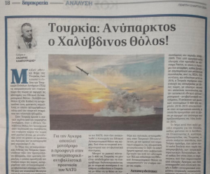 Bu mesele Yunanistan için büyük önem taşıyor. Çünkü Türkiye’nin doğrudan Cumhurbaşkanı’na bağlı İletişim Başkanlığı (daha doğrusu propaganda birimi), Türk askeri kabiliyetlerini aşırı abartma konusunda çok başarılı oldu. Pek çok durumda Ankara tarafından sunulan ve bazı Yunan kaynaklarınca da tekrarlanan “Türk yapımı silahların operasyonel hazır olduğu” iddiaları, gerçekte hâlâ üretim veya test aşamasındaki sistemlerdir. Örnek olarak ulusal 5. nesil savaş uçağı KAAN, ulusal tank ALTAY, TAYFUN füzesi, hava savunma sistemleri vb. verilebilir.